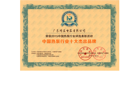 7月,同益空氣能榮獲“熱泵行業杰出品牌”