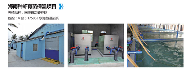 1、選用水源熱泵機組。根據客戶使用環境,項目地點靠近大海,有源源不斷的海水作為水源提供,而且海南氣候溫暖,海水年最低溫度都在18℃以上,非常利于水源熱泵的運行。選擇水源熱泵的制冷量要比空氣源熱泵好,滿足客戶夏天給蝦池降溫要求。